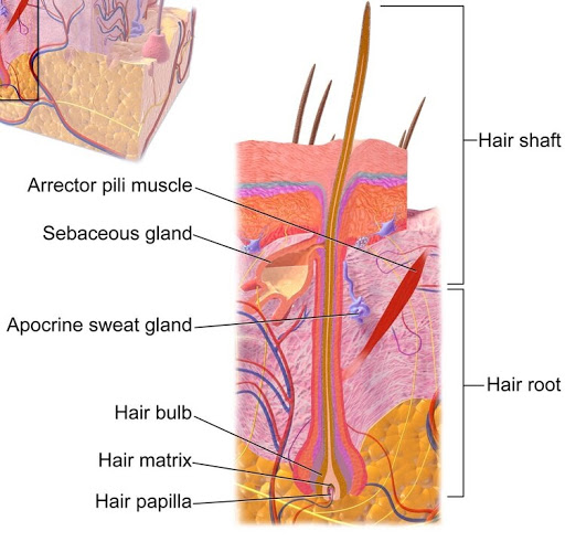 Sebaceous glands deposit sebum – a natural oil that helps lubricate your skin and hair – at the base of the hair follicle. Throughout the day, sebum moves up the hair shaft and through the opening of hair follicles, known as your pores.