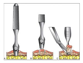 After we anesthetize the suspicious area, a special medical device can be used to “punch out” a cylinder-shaped piece of skin and tissue. It will then be sent to a laboratory for further examination.